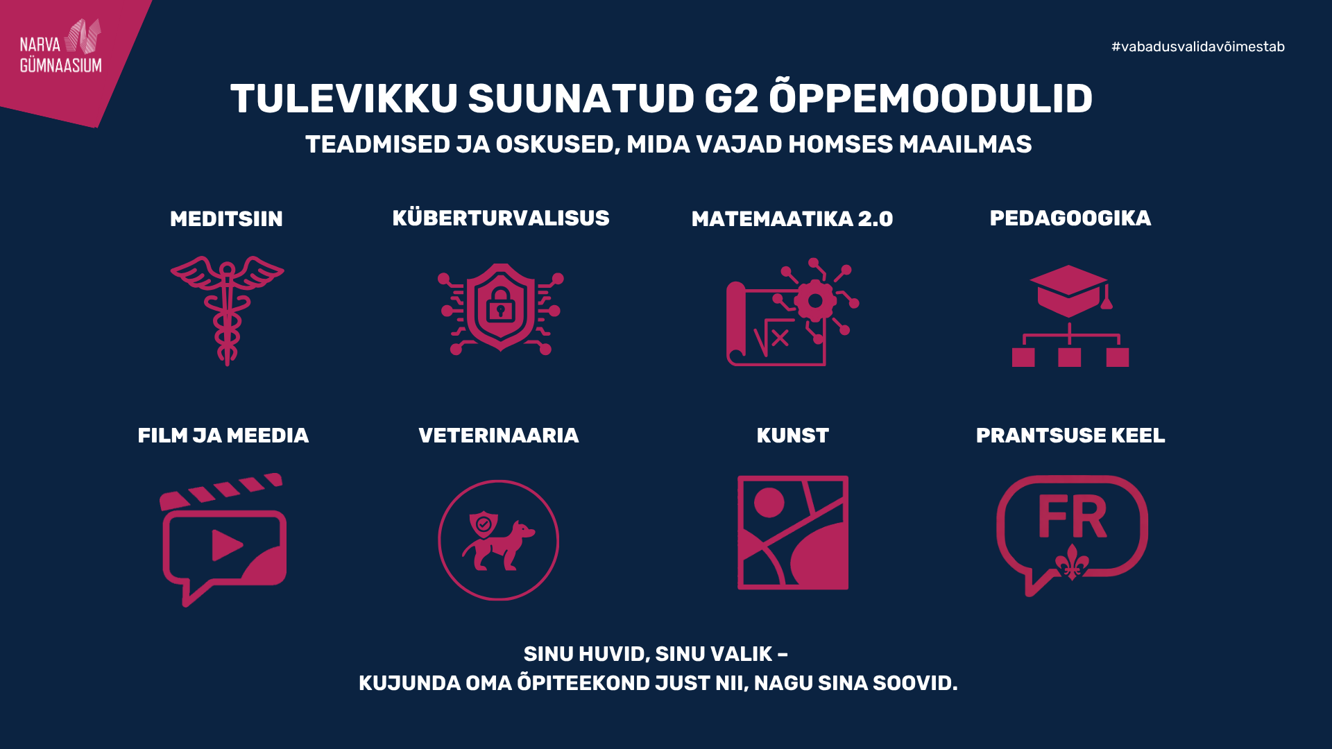 G2 õppeastme õpilastel on võimalus valida õppemoodul, mis annab süvendatud teadmisi ja praktilisi oskusi huvipakkuvas valdkonnas.