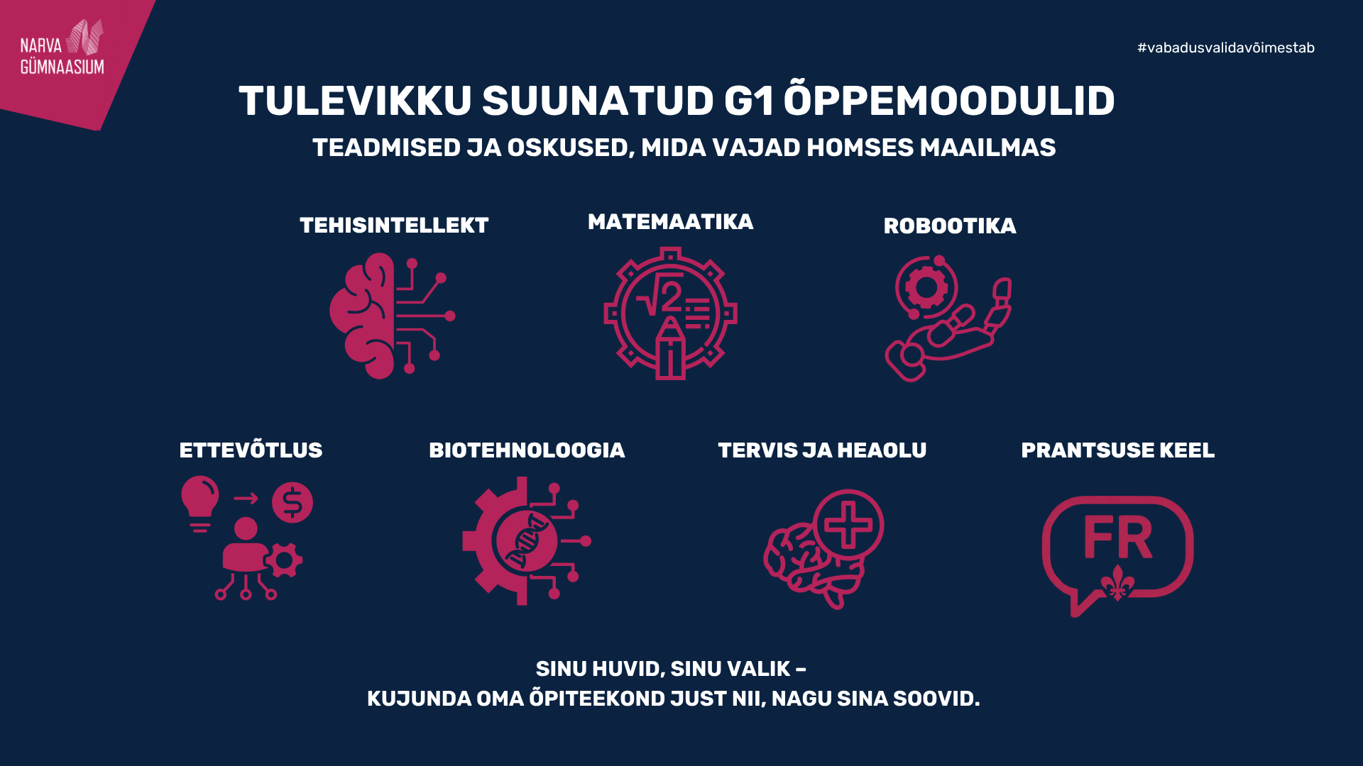 G1 õppeastme õpilastel on võimalus valida õppemoodul, mis annab süvendatud teadmisi ja praktilisi oskusi huvipakkuvas valdkonnas.
