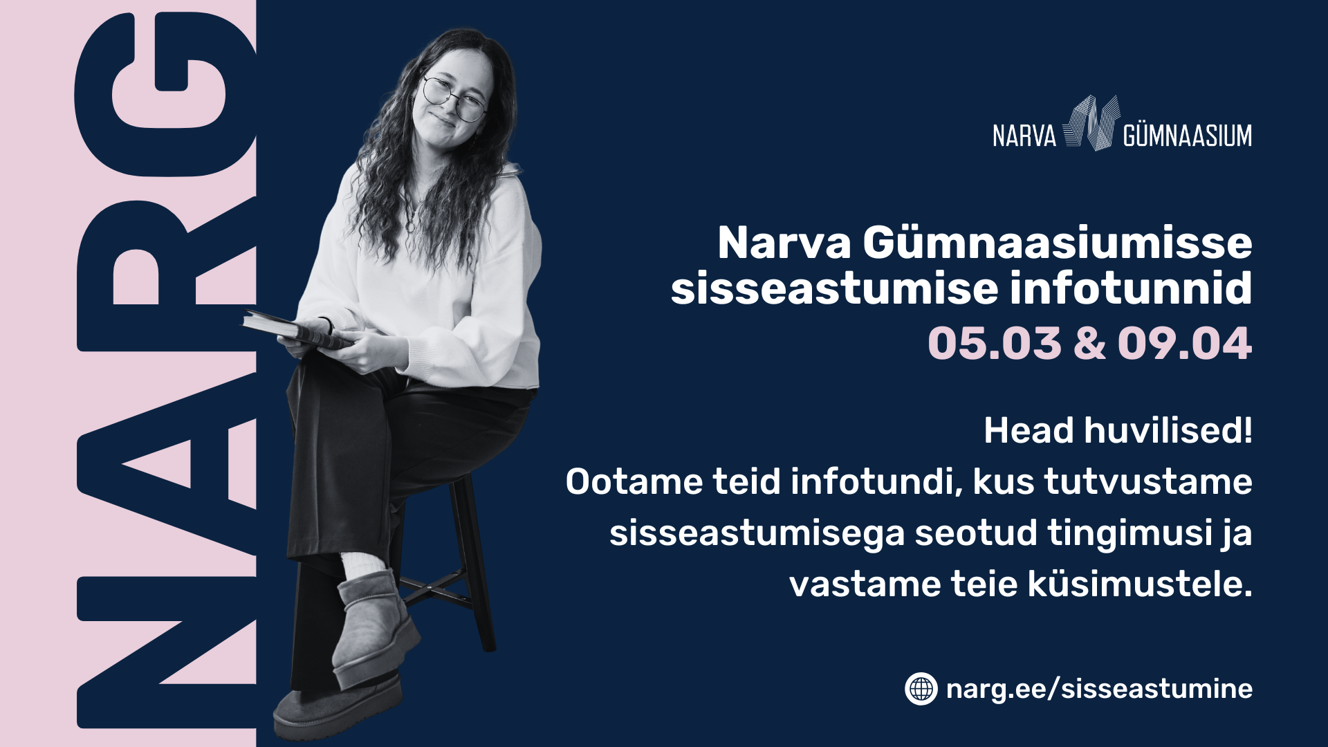Narva Gümnaasiumi sisseastumise infotunnid toimuvad 5. märtsil ja 9. aprillil 2026 kell 17.30 kooli auditooriumis. Infotunnis antakse ülevaade vastuvõtutingimustest ja kandideerimisprotsessist, õppekorraldusest ja õppimisvõimalustest, sealhulgas õppekavast ja õppemoodulitest, samuti koolielust ja arenguvõimalustest. Osalejatel on võimalus esitada küsimusi ning saada täpsemat teavet kooli õppe- ja arengukeskkonna kohta. Infotund on suunatud põhikooli lõpetajatele ja nende vanematele ning toetab teadliku haridusvaliku tegemist. Osalemiseks on vajalik eelregistreerimine.